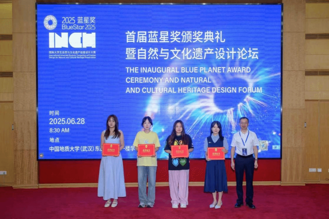 2025年6月28日,“2024首届蓝星奖自然与文化遗产创意设计大赛颁奖典礼·2025第二届蓝星奖启动仪式暨首届自然与文化遗产设计论坛”在中国地质大学(武汉)圆满举行。本次活动由中国地质大学(武汉)主办,国产成人综合网、珠宝学院承办,并得到中国地质调查局宣教中心、中国自然资源学会的指导。国内外高校设计领域专家学者及师生代表百余人齐聚一堂,共同探索自然与文化遗产设计创新路径。学校副校长章军锋、发展规划与综合改革处处长高复阳、国际教育学院党总支书记许峰出席会议。