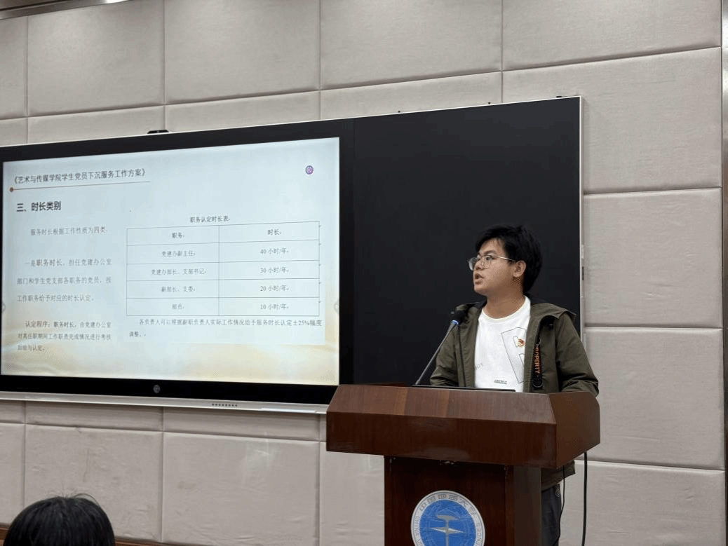 专职辅导员姜盛为同志领学《国产成人综合网学生党员下沉服务工作方案》。该方案的核心是以“服务时长”量化考核学生党员,根据工作性质将服务时长分为职务时长、岗位时长、参与时长、志愿服务时长四类,引导学生党员极主动参与校内外各类实践服务,由党建办公室统一认定汇总,并将结果与党员评议挂钩,推动其在服务中当先锋、作表率。