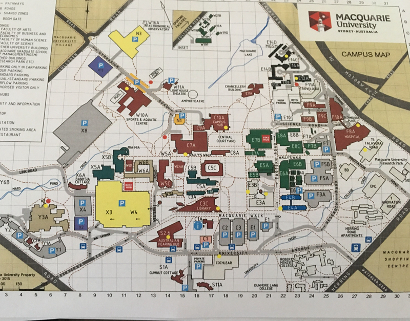 大巴渐渐向麦考瑞大学驶进,车上的我们怀着期待和紧张的心情,一边看着窗外,一边感受着这座城市的气息——湛蓝通透的天空,松茸洁白的云朵,翠绿茂密的室内温带植物和一望无际的被太阳照耀的草坪,更值得赞叹的是那井然有序的交通和一尘不染的车辆,所有的新事物彻底打消了我们路途中的疲惫。