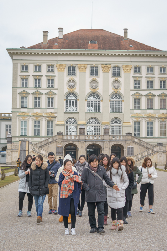 宁芬堡位于德国慕尼黑西北郊,始建于1664年,其装饰繁细,华丽典雅,占地200公顷的庭院亦丝毫不逊色于欧洲其他宫殿。走在宁芬堡的前庭中,只见殿前数潭清水,天鹅仰颈从潭中游过,其间更有水鸟野鸭,周围浓荫掩映,好一副静谧典雅的风景随笔。怡人的风光引得访学团成员纷纷驻足,只肖一眼,便沉醉于此。见此情状,马林老师亦停下脚步,示意访学团成员自行观赏,并在轻松的氛围中简单介绍了宁芬堡的历史,他表示:“宁芬堡是巴伐利亚王国独立后,路德维西家族在此建立的夏宫。相传是费迪南·马里亚亲王送给妻子的礼物,感谢她生下了王室的继承人。在宫殿建成之后,每年的夏天,王族亲眷都会来此避暑度假。”语毕,马林老师更邀访学团成员一同前往宁芬堡的后庭,细看宁芬堡庭院风光,并在此留影纪念。