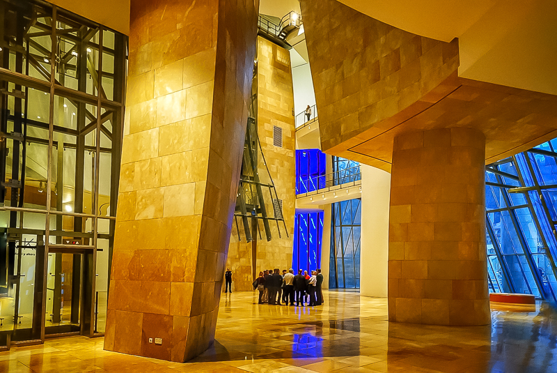 下午6点20分,访学团在细雨朦胧中抵达了毕尔巴鄂,并在马林老师的带领下前往参观古根海姆当代艺术馆。该艺术馆是由美国艺术家弗兰克·盖里设计,其中收藏着多件当代艺术珍品。如意大利超前卫主义、德国表现主义、美国波普艺术等风格流派的艺术品均在此有所收藏。马老师认为,在该艺术馆中,不能只看到馆藏的艺术品,而需了解当代艺术史与艺术流派的变迁。此外,他还提到:“上世纪六十年代开始,世界美术史的中心从欧洲转到了美洲,而美国渐渐掌握了世界艺术的话语权,并开始有意识的鼓励德国、意大利等国的不同艺术流派进行艺术创作。而中国或者其他国家,也出现了一批现代艺术家,但却并未形成流派,因而在世界美术史中能起到的影响也非常有限。”对此,他还表示:“年轻的一代具有更强的接受性与可塑性,也许能通过学习优秀的现代艺术作品来加强自身的艺术修养,来达到发展世界现代艺术的目的。”