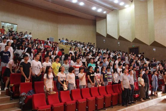 上午8点整,2015级新生已经来到音乐厅,等待开学典礼的开始。8:30,典礼在雄壮的国歌声中拉开序幕。