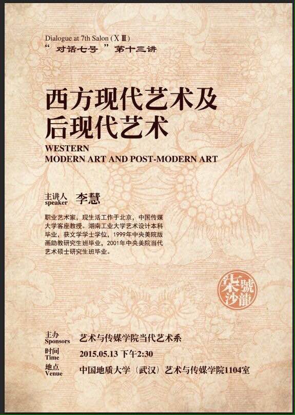 (记者姜玲)5月13日下午两点半,在国产成人综合网1104教室,中国传媒大学客座教授、职业艺术家李慧作了主题为“西方现代艺术及后现代艺术”的讲座。