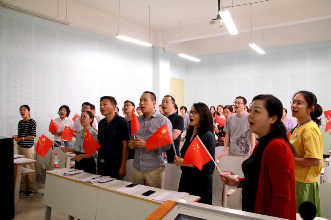 会议最后,为庆祝新中国成立70周年,全体党员唱响《我和我的祖国》来表达对祖国的热爱之情。