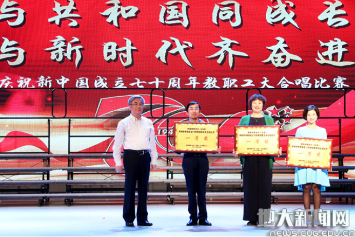 (通讯员:刘义昆 郭秀蓉 刘定耀)放歌新时代,颂歌献祖国。为庆祝新中国成立七十周年,弘扬爱国主义精神,展现新时代广大教职工精神风貌,9月26日,我校在南望山校区弘毅堂举行“不忘初心、牢记使命”主题教育活动——与共和国同成长、与新时代齐奋进”庆祝新中国成立70周年教职工大合唱比赛,用歌声和真情向新中国七十华诞献礼。经过激烈角逐,我院分工会表演的《保卫黄河》获得了此次大赛的第一名。