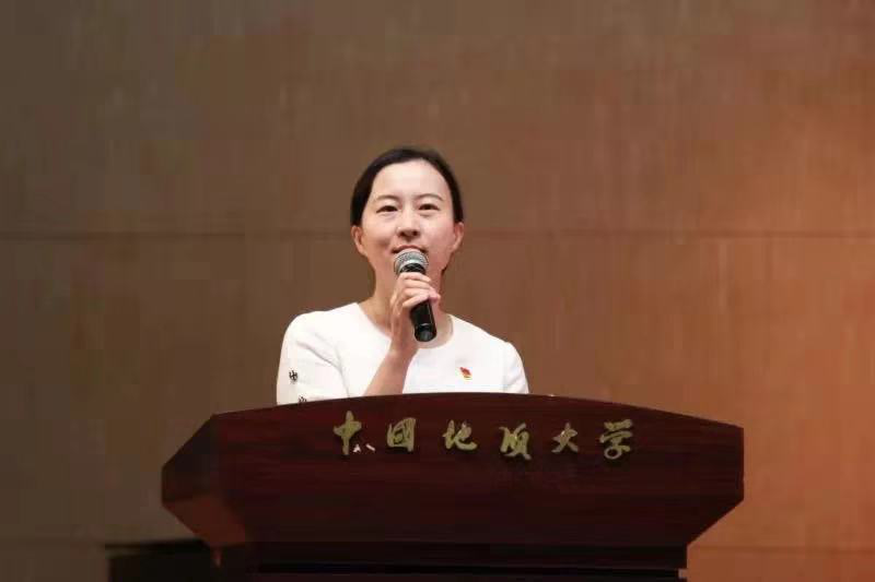 教师代表新闻传播系丁洁老师代表学院所有老师向2019级新同学表示热烈欢迎,希望同学们在大学时光中珍惜时间、独立思考、关心他人。最后她以女排精神与大家共勉,鼓励青春只有努力过才能无悔。