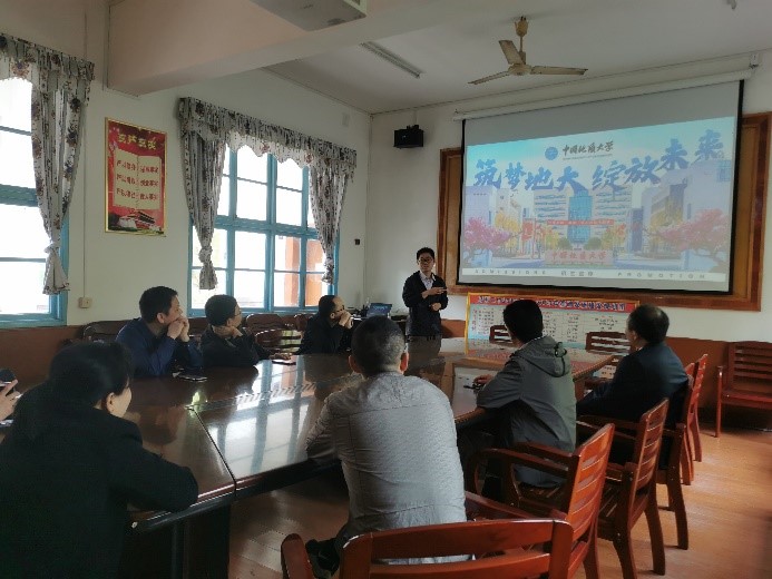 吴仁喜为慈利二中全体高三班主任介绍学校总体概况及学院办学情况,并一同观看学校宣传片《地大之光》。他从学校概况、培养特色、招生政策、校园活动、学校环境为与会老师全面介绍中国地质大学(武汉),并结合“美丽中国 宜居地球:迈向2030-地球科学领域国际知名研究型大学建设战略规划”解读学校发展新的历史方位。他希望,以本次招生宣传为契机,通过大学先修课、研学旅行等丰富的形式,进一步加大与慈利二中的交流合作,让更多优秀的学子感到地大深厚的底蕴,享受到更多地大发展的红利,赢得更多人生出彩的机会。