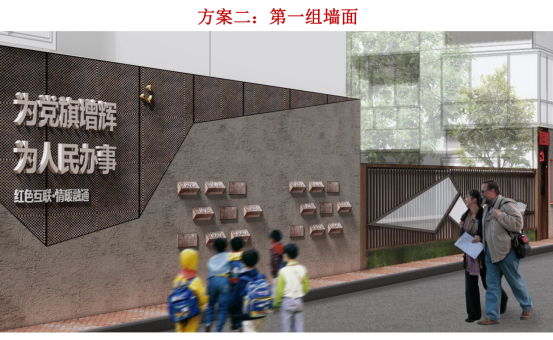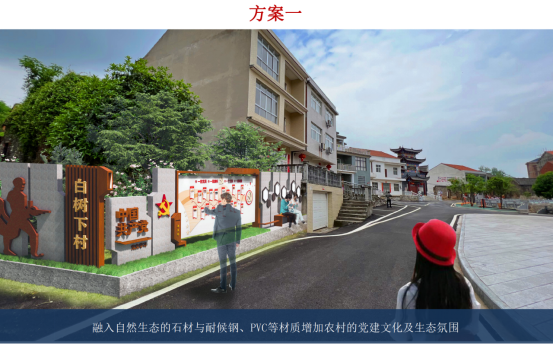 在此号召之下,艺媒学院景观学系党支部针对湖北省黄冈市武穴市刊江街道三个代表性小区进行了红色文化主题的改造设计,将景观学系专业所长进行发挥,用艺术设计来激活武穴市刊江街道,结合教学、科研和社会实践,为社区建设提供创意设计支持,塑造“一区一名片”的特色品牌,形成具有区域影响力的文化名片。