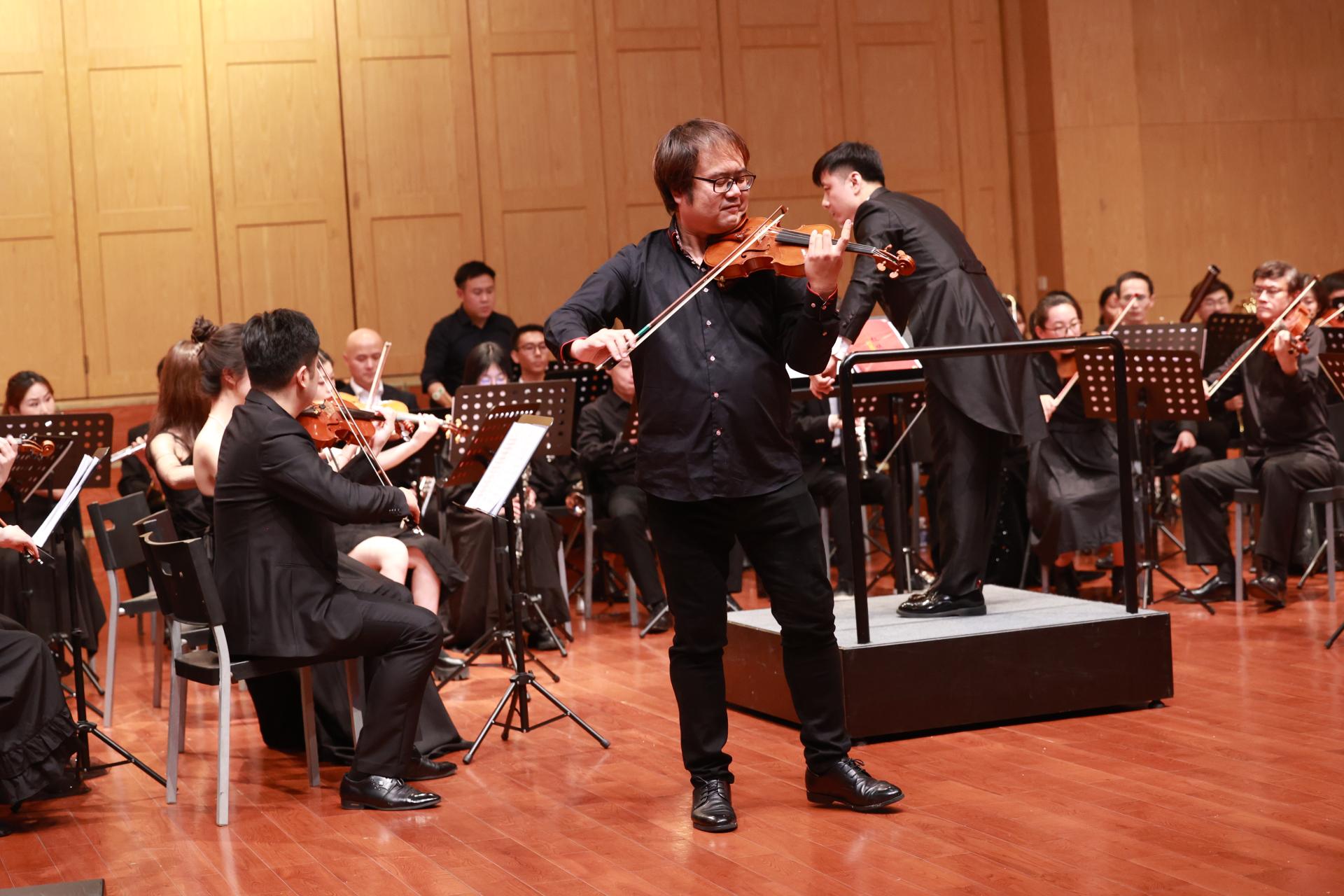 我校“地大学者”学科骨干人才、国产成人综合网王凯平教授,压轴登台演奏了红色经典小提琴独奏曲《金色的炉台》。本曲在上世纪七十年代由著名小提琴作曲家陈钢根据歌曲《毛主席的光辉把金色的炉台照亮》改编。乐曲运用民族民间音乐元素,感情真挚、乐思巧妙,旋律富有激情。