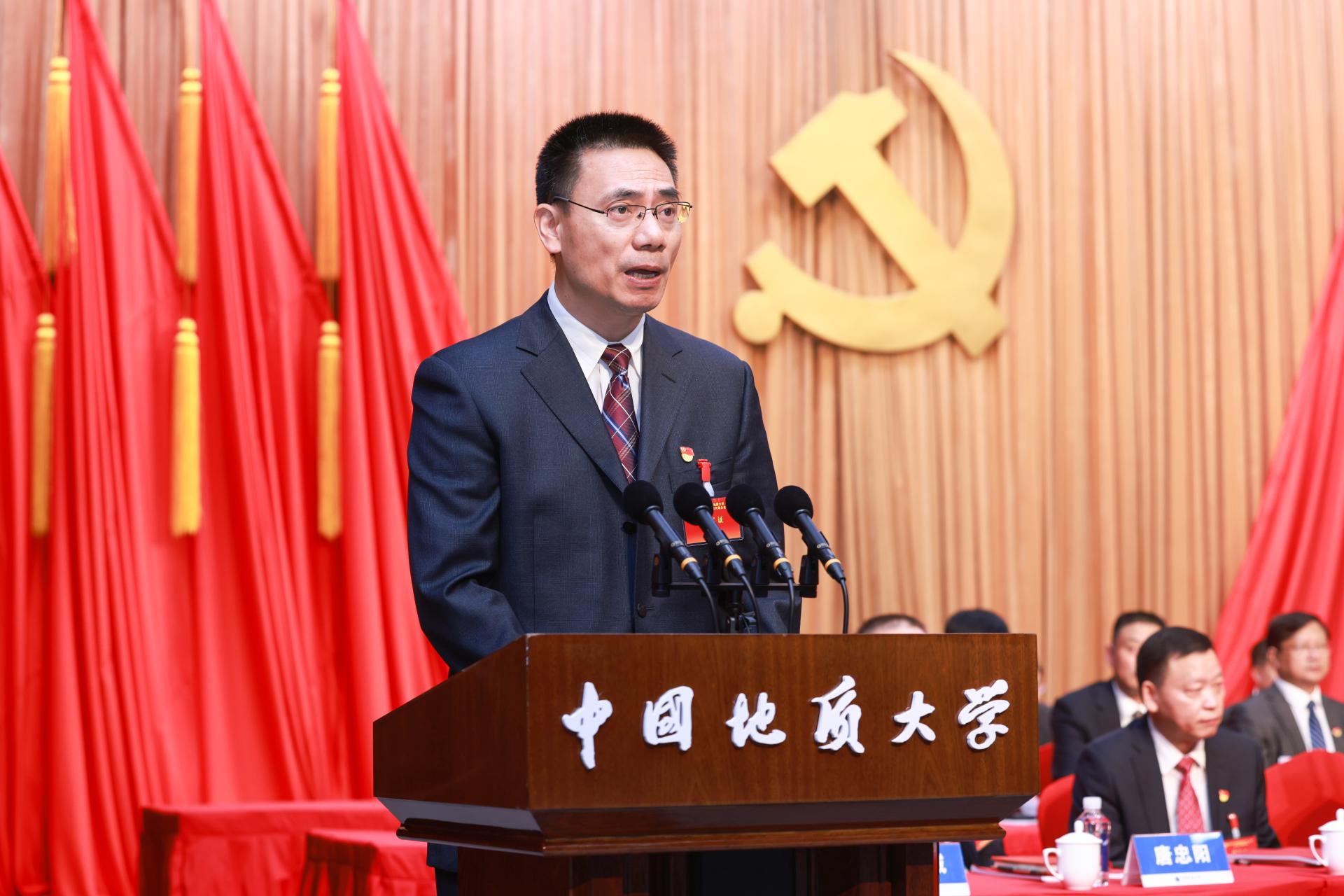 大会主题是:以习近平新时代中国特色社会主义思想为指导,全面贯彻落实党的二十大精神和湖北省第十二次党代会决策部署,传承和弘扬优良办学传统,落实立德树人根本任务,砥砺奋进、开拓创新,以更高水平开放、更深层次改革、更高质量创新,加快建设地球科学领域国际知名研究型大学,为建设教育强国、以中国式现代化全面推进中华民族伟大复兴作出新贡献。