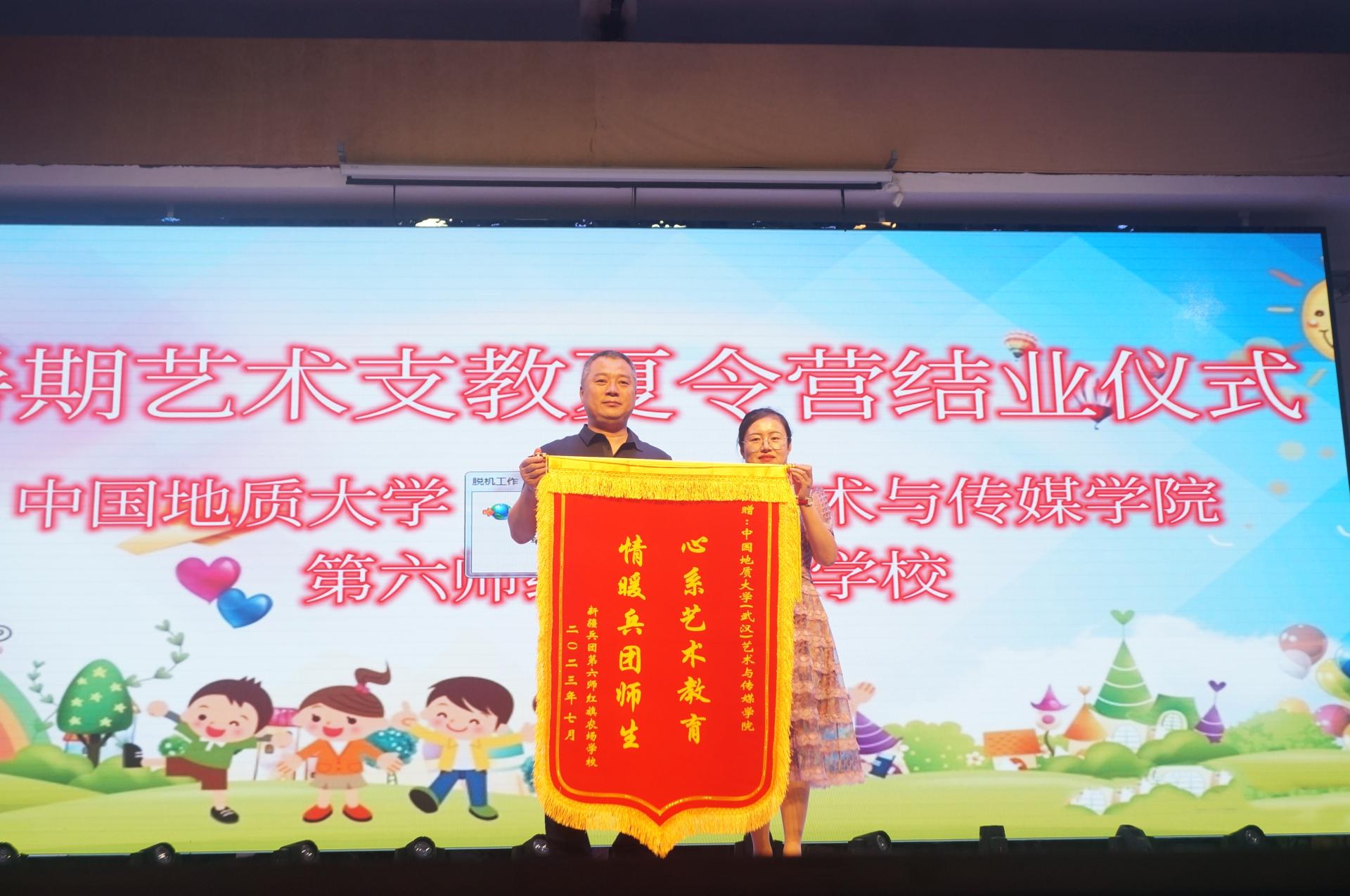 在本次艺术夏令营活动中,各个班级都涌现出一批优秀学员,他们在课堂上表现优异,成为了同学们的榜样。在学校和支教团各位老师的综合评定下共选出了30名优秀学生代表,结营仪式中边书记、王校长、马校长以及福泽大酒店的彭总上台为这批优秀学员颁发了荣誉证书和奖品,奖品是具有地大特色的七十周年校庆抱枕和玩偶,希望获奖的同学们可以以此为契机,在心里种下一颗艺术的种子,以饱满的热情和无限的希望迎接灿烂美好的明天。