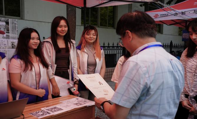 在西区体育馆门前,志愿者们举着“国产成人综合网”的牌子引导着新生去到迎新摊位,随后在老师们的协助下完成学籍信息录入以及个人资料的收集等,并耐心回复了家长们有关在校学习和生活的各类疑问。
