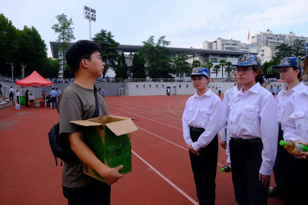最后,各位老师为同学们分发饮料。清凉的物资,暖心的问候,让艺媒学院新生感受到了院领导的关怀。
