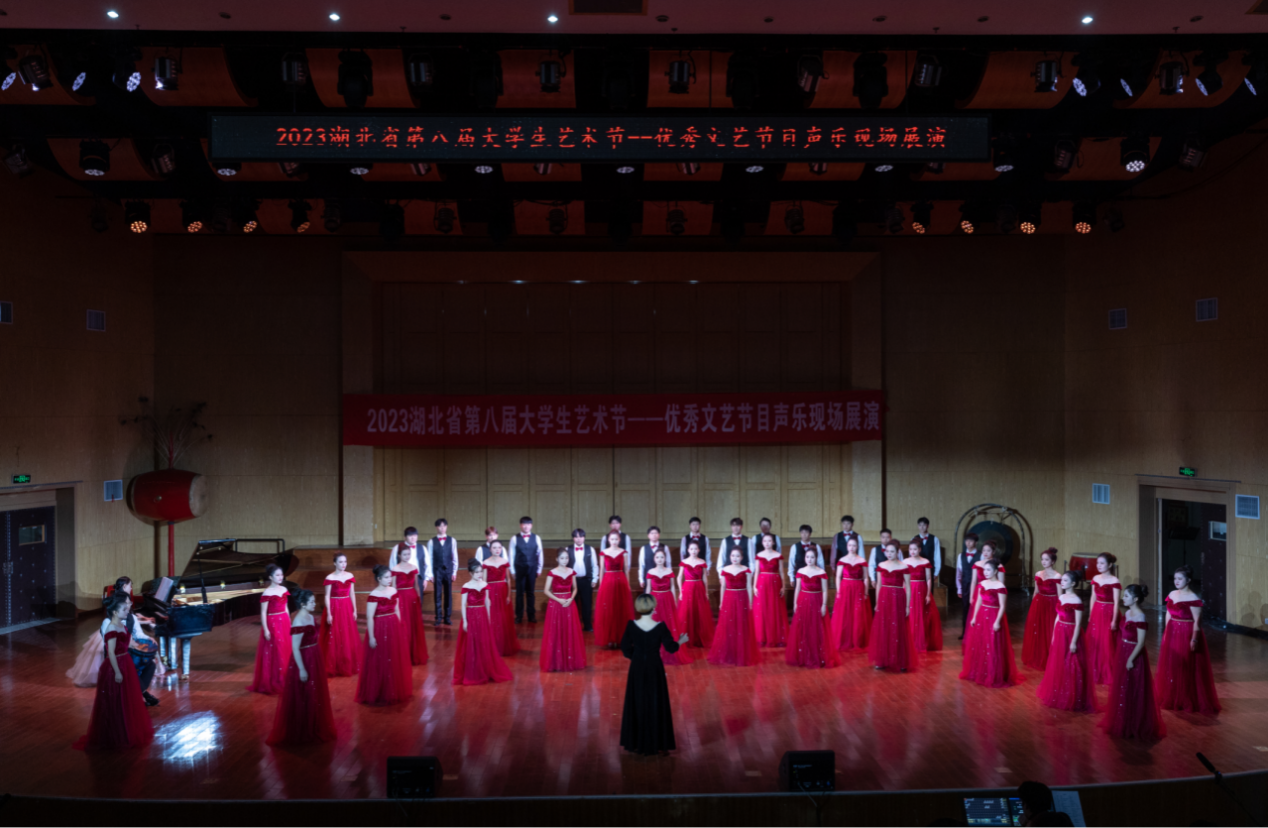 (通讯员:单湉艺、曾戈晖)由湖北省教育厅主办、中国地质大学(武汉)承办,以“厚植家国情怀,涵养进取品格”为主题的湖北省第八届大学生艺术节优秀文艺节目声乐现场展演于2023年12月7日至9日在中国地质大学(武汉)北区音乐厅举办。