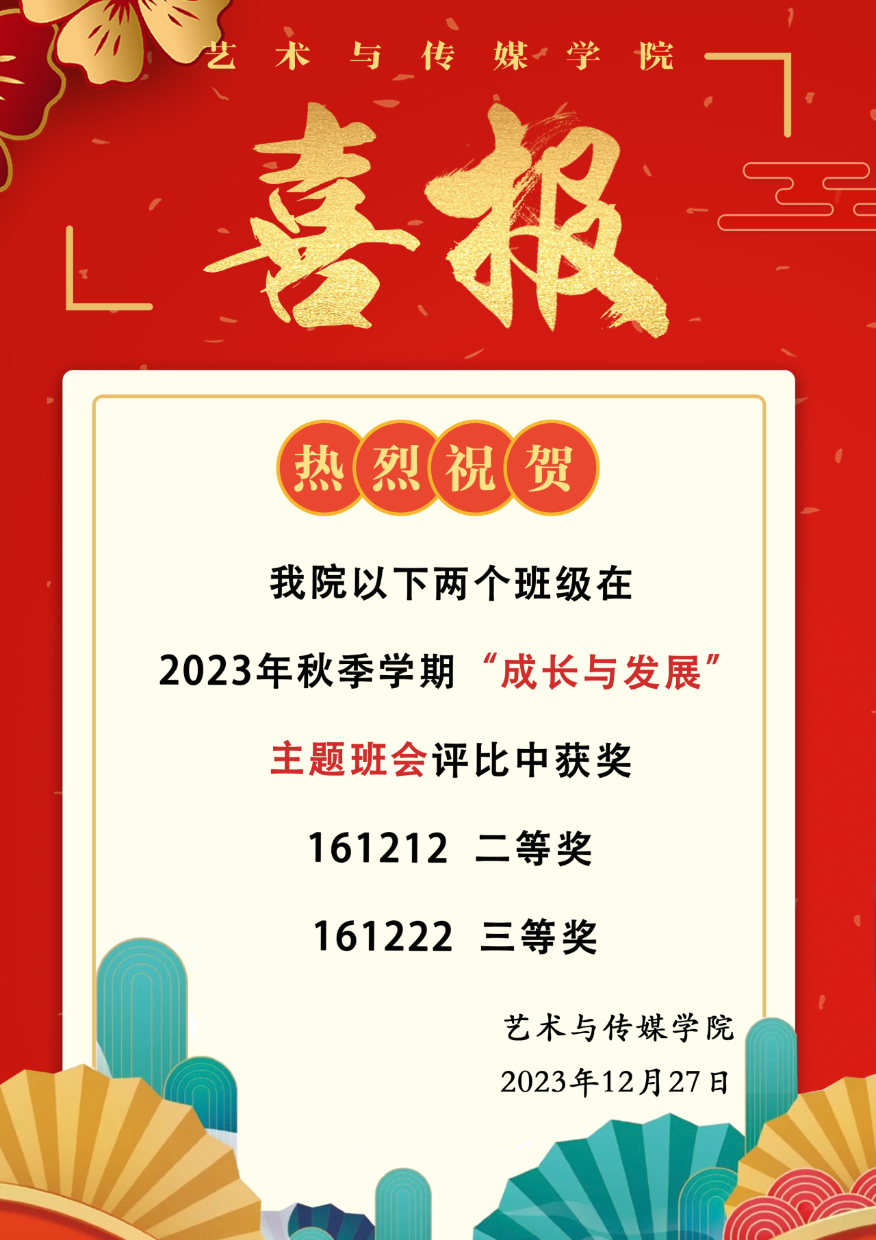 喜报!热烈祝贺我院在2023年秋季学期“成长与发展”主题班会中荣获佳绩