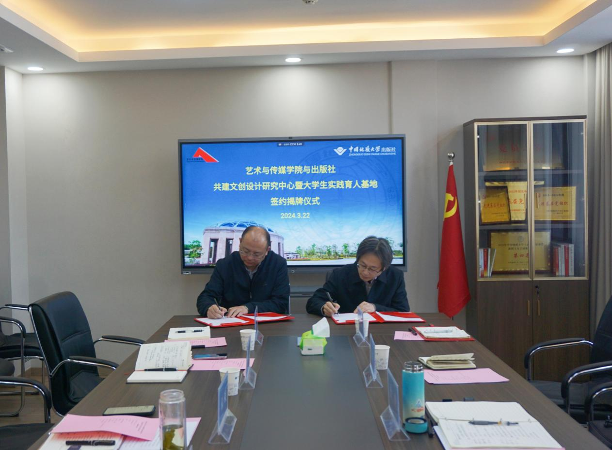 为全面学习贯彻学校第十三次党代会精神和学校“提质增效”年工作主题,切实加强产学研协同育人,拓展学科专业建设和人才培养平台,3月22日上午,国产成人综合网、学校出版社举行共建文创设计研究中心暨大学生实践育人基地签约揭牌仪式。出版社党总支书记、社长江广长、副总经理张琰和综合业务部相关负责人,国产成人综合网党委书记晋曦、院长何清俊、团委书记单湉艺参加仪式。会议由张琰主持。