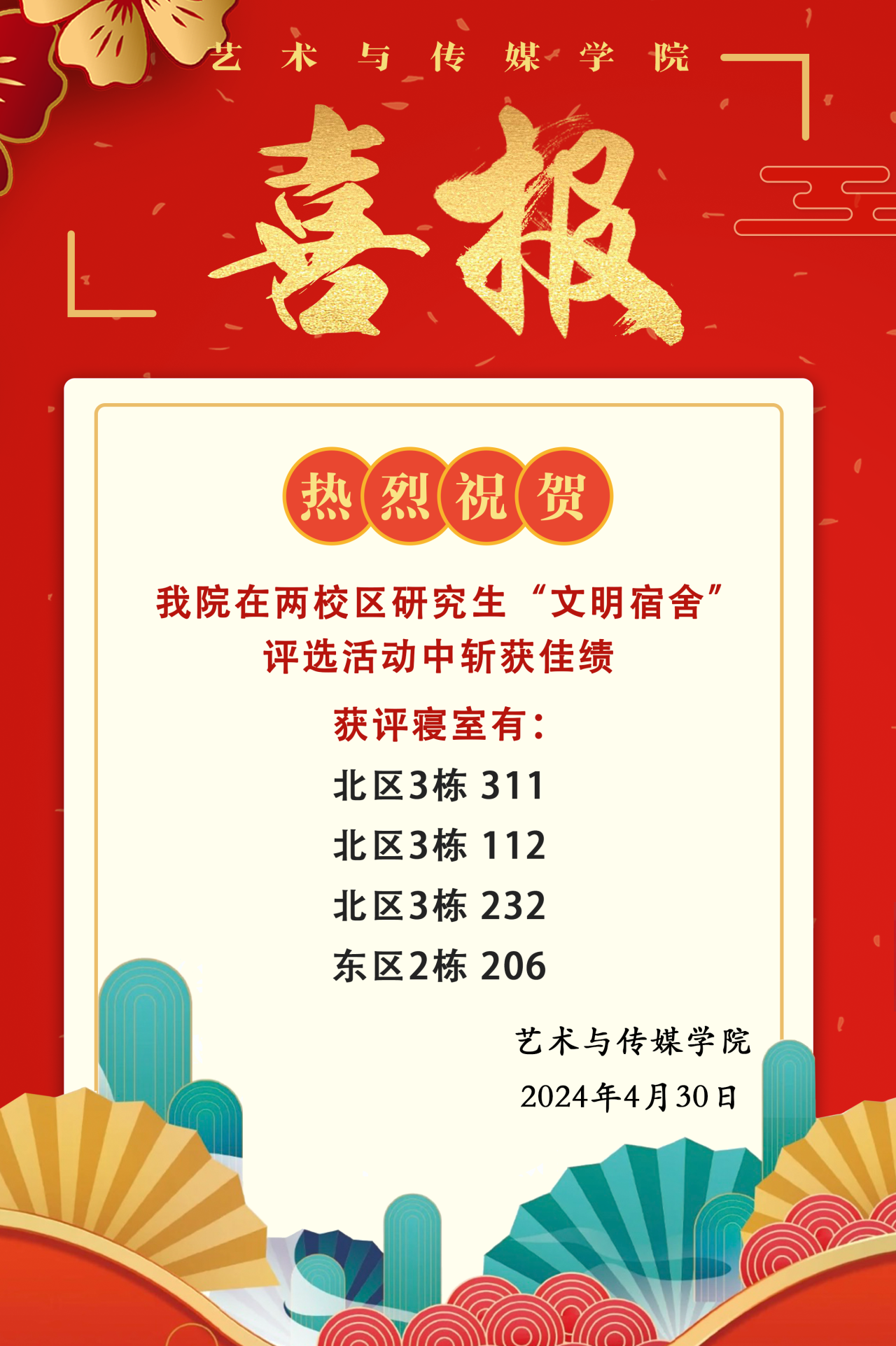 喜报 | 热烈祝贺我院在两校区研究生“文明宿舍”评选活动中斩获佳绩!