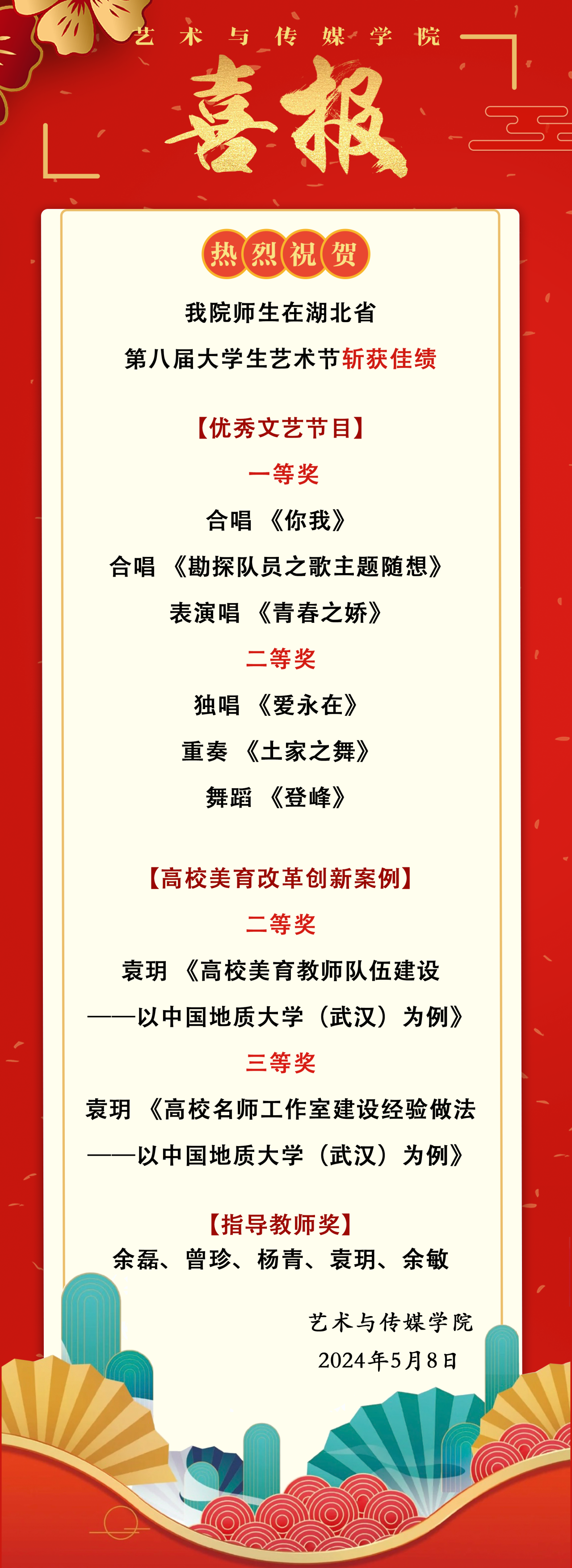 我院多部作品斩获湖北省第八届大学生艺术节多个奖项,不仅是对专业教学成果的肯定,更是学校美育工作在省内的一次成功展示。未来,国产成人综合网将继续坚持“以美育人、以文化人”,围绕党和国家发展的时代主题,在习近平文化思想的指引下,将美育实践与学科建设相结合,让音乐之美浸润校园!