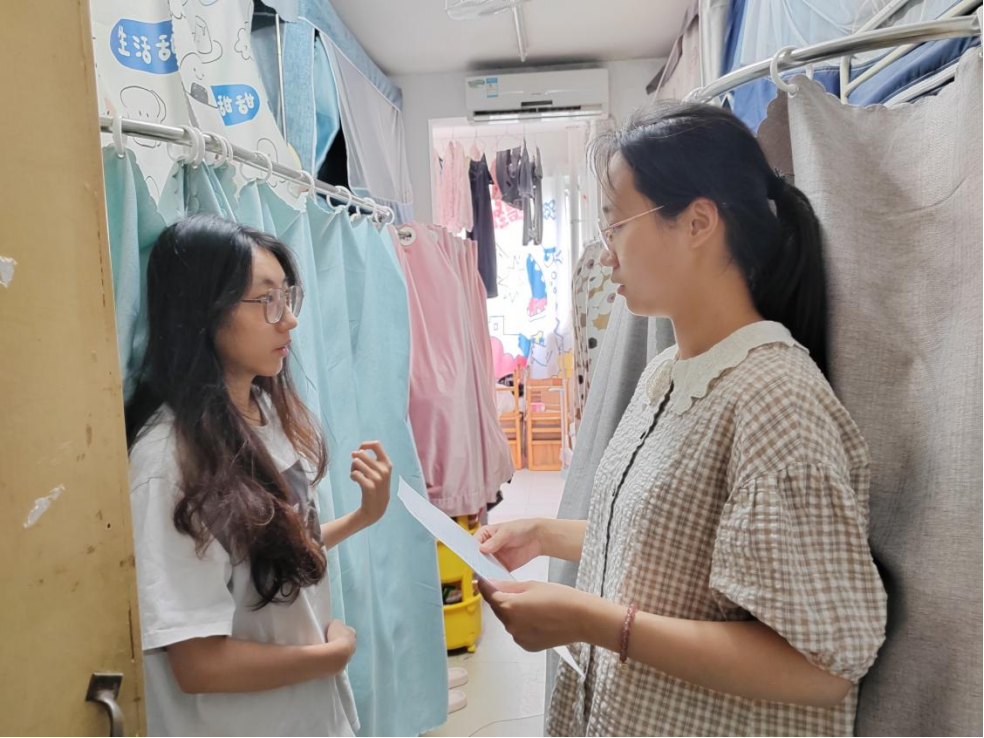 时值端午节假期,为严格落实学生假期学习生活、纪律规范及安全工作,学院于6月7日开展了一次全面的宿舍走访活动。在学院党委副书记边建华的带领下,学工组全体专兼职辅导员深入学生宿舍,了解学生动态,排查假期期间的卫生安全隐患。