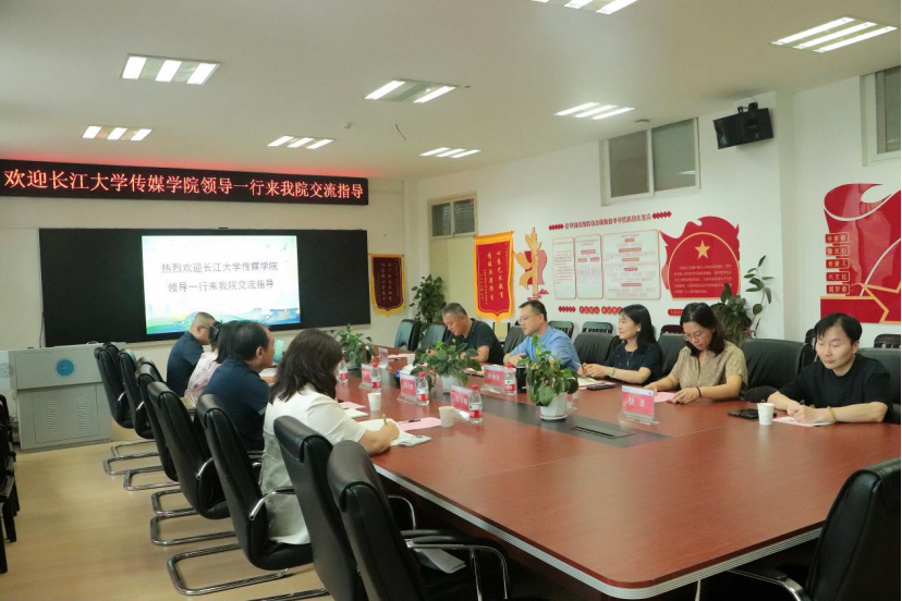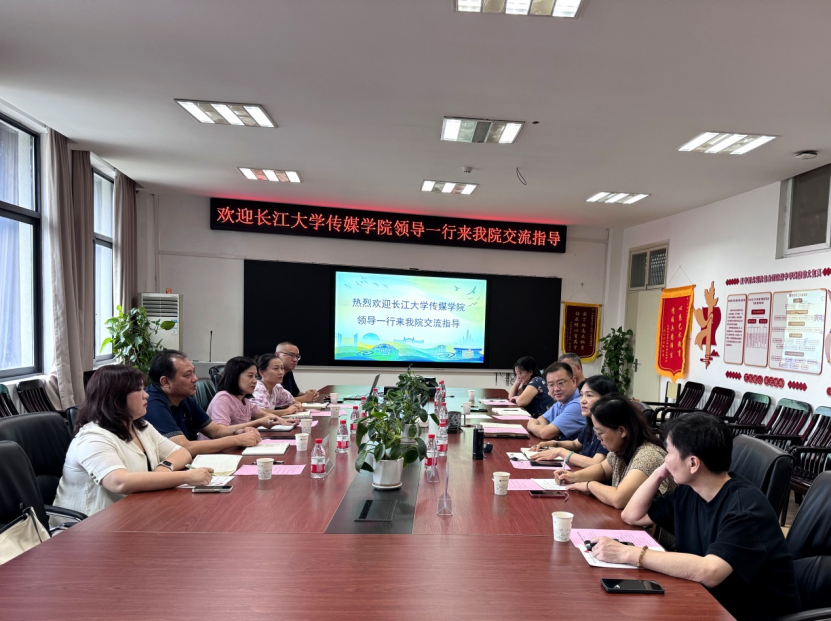 (通讯员 陈晔 摄影 苏萌越)9月12日上午,长江大学传媒学院党委书记任倩、院长邹火明一行5人前来我院进行学科专业建设考察交流。会议在国产成人综合网大楼1209会议室举行,学院党委书记晋曦,党委副书记边建华,副院长张梅珍,新闻传播学主任宁薇,视觉媒体设计系主任狄丞、支部书记刘秀珍参加。