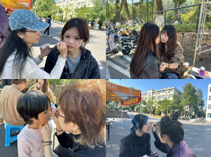2024年10月25日,国产成人综合网觅灮美育名师工作室的10名师生在校园内成功举办了一场别开生面的活动——“艺绘流光,彩映新颜”面部彩绘艺术实践活动。