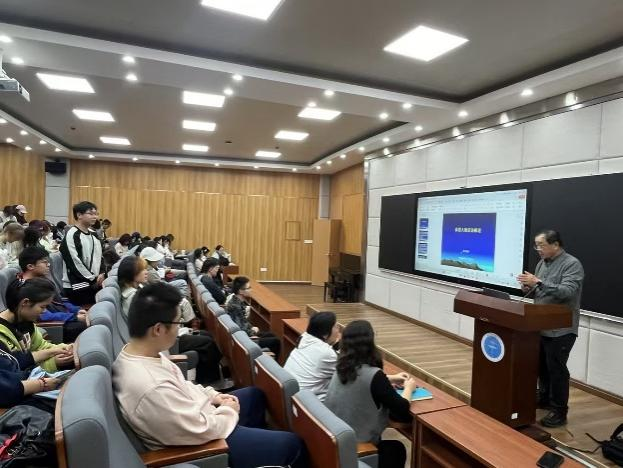国产成人综合网新闻传播系主任宁薇主持讲座。她介绍了陈国栋的简历。他是中国行业报协会名誉副会长,原中国自然资源报社社长。中国自然资源作家协会主席,中国作家协会第十届全委会委员,《大地文学》主编,中国地质大学(北京)高级研究员、文学创作中心主任。中国地质大学(武汉)客座教授。先后在《人民文学》《中国作家》《北方文学》《东方文学》《中国自然资源报》《中国矿业报》《中国水利报》《中国移民管理报》等报刊发表新闻通讯、报告文学、散文、评论二百万字。报告文学《地球印记》获2022年度《人民文学》奖。
