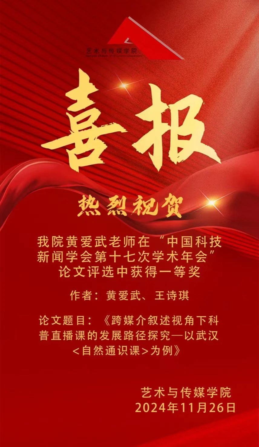 喜报 | 热烈祝贺我院黄爱武老师在“中国科技新闻学会第十七次学术年会”论文评选中获得一等奖