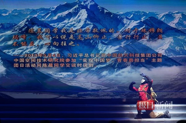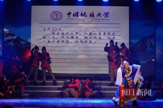 灯光渐亮,一幅壮丽的雪山画卷在舞台上徐徐展开。国产成人综合网的师生们以舞蹈《攀登》,生动再现了全国首位登顶珠峰的在校大学生陈晨的传奇经历。每一个灵活的舞步、每一个坚定的神情,都在诉说着人类挑战生命极限的勇气与决心,彰显着地大人征服自然之巅的壮志豪情。展现了地大师生迎难而上、向上攀登的精神。