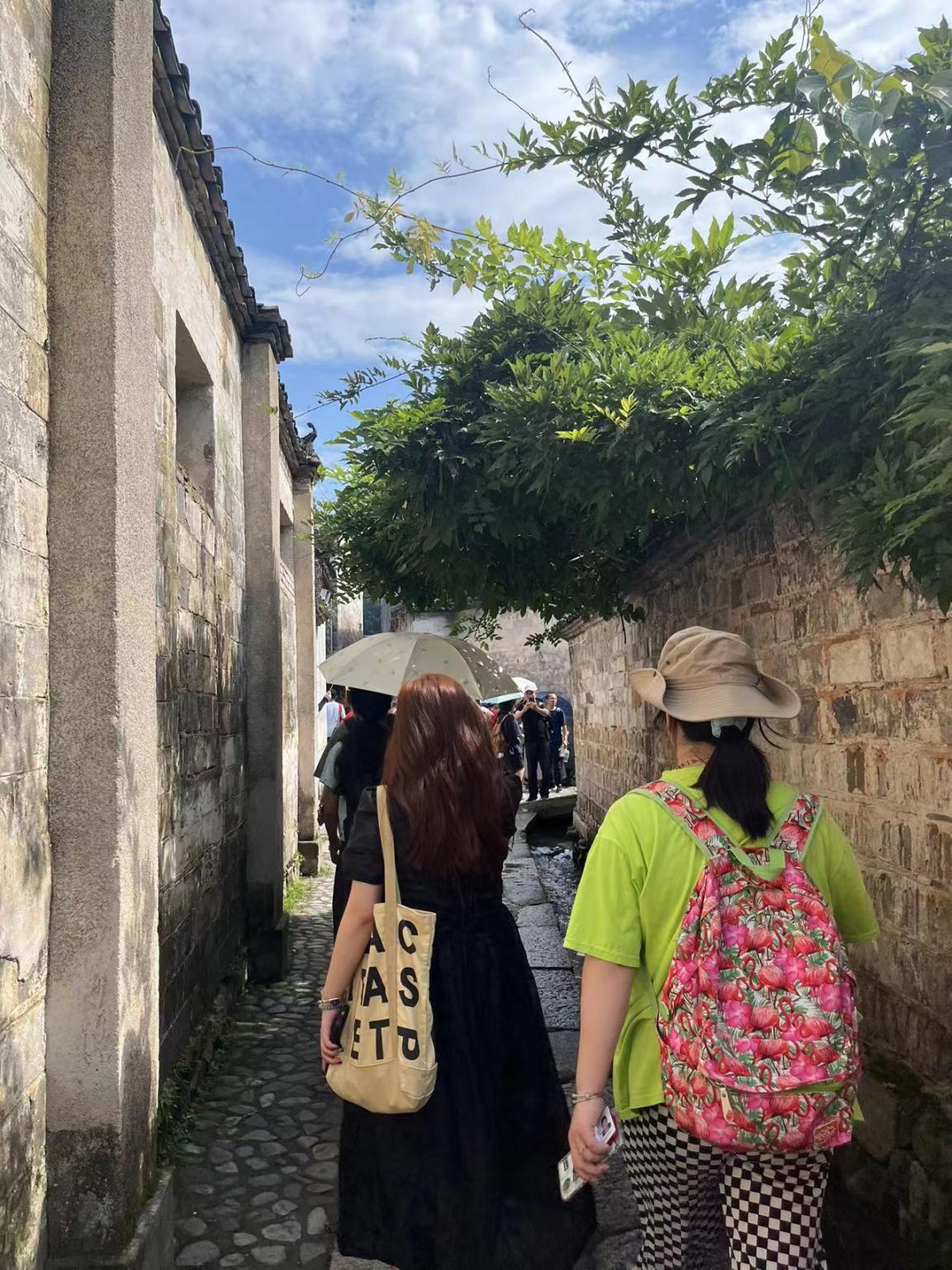 第三天,同学们前往一座有千年历史、规模宏大的古村落——南屏参观写生。南屏村有近三百多座明清古建筑,村中有36眼井,72条巷,从村头到村尾二百多米的一条中轴线上,保留八个大小祠堂,这种祠堂群在全省也是仅此一家。同学们在此观摩学习。