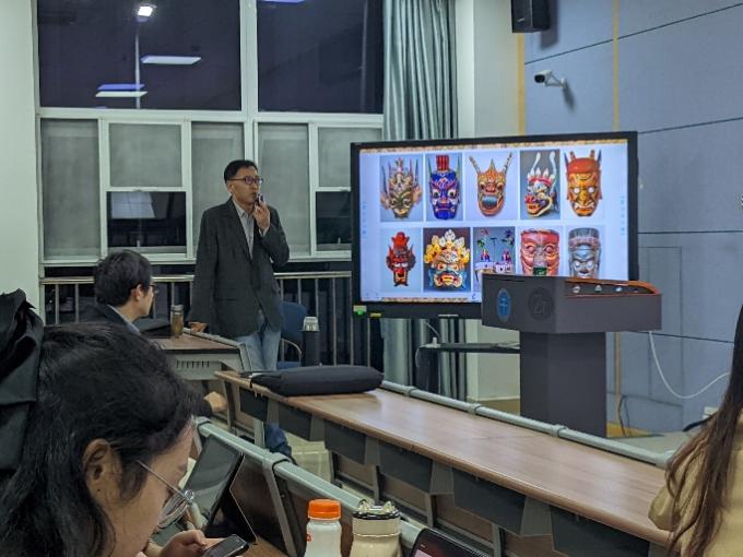 2023年11月9日下午19:00,以图式再造与文化传承:基于傩雕工艺的设计实践为主题的艺术与传媒系列讲座在东教C106顺利召开。此次讲座由国产成人综合网院长何清俊教授主持,湖北经济学院艺术设计学副院长黄朝斌教授主讲。