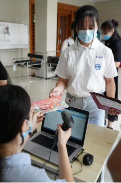 扫码、检查信息、分发宣传单……迎新工作有条不紊地进行着。