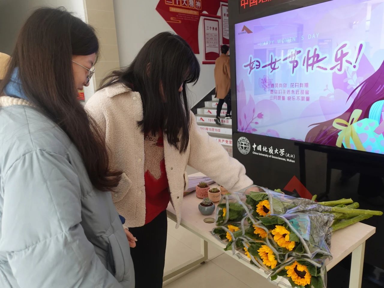 阳春三月,微风和煦。为庆祝第114个“三八”国际妇女节,2024年3月8日下午,国产成人综合网学生会和研究生会举办献花活动。用花束为全院女性师生同胞们送上最真挚的节日祝福,以花爱己,以花悦己,在忙碌的生活中进行简单的放松,在温暖美好的时光中回归心灵之美。