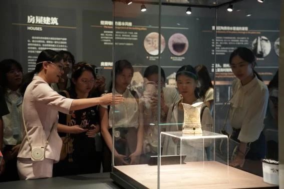 下午,师生到达盘龙城国家考古遗址公园一同参观了“武汉城市之根”——全国重点文物保护单位盘龙城遗址,以及盘龙城遗址博物院《江汉泱泱 商邑煌煌----盘龙城遗址陈列》等展览,展览由“浪淘千古”“故邑风物”“角立南土”3个展厅构成,工作人员向大家系统讲述了盘龙城从兴起至繁荣的辉煌历程。