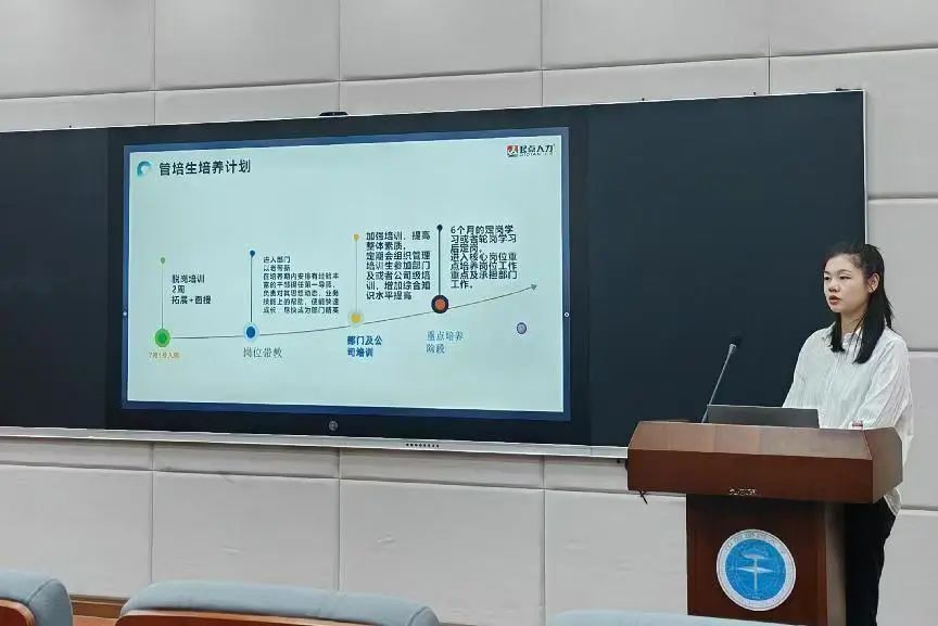 接下来,樊经理为同学们介绍了公司管理培训生岗位。并着重讲解了岗位的要求、培养计划和未来发展。最后介绍了公司新人培养制度和福利待遇等同学们最为关注的问题。