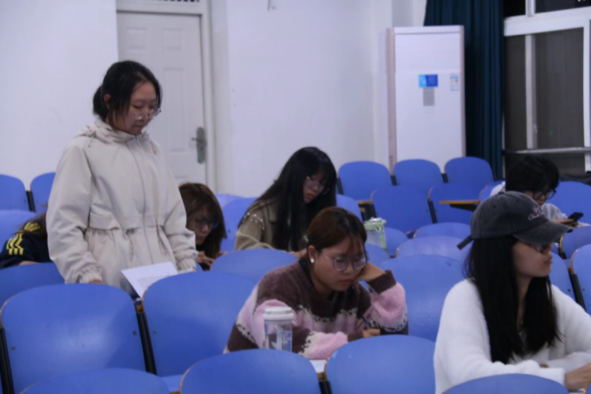 第三场辩论赛在北综楼306教室举行,由陈雅雯、欧一凡、张心童担任评委。来自16s245班的“从容应队”作为正方,来自16s243、163241班的“少年先锋队”作为反方,就“善意能/不能成为恶果的免罪符”展开激烈讨论。