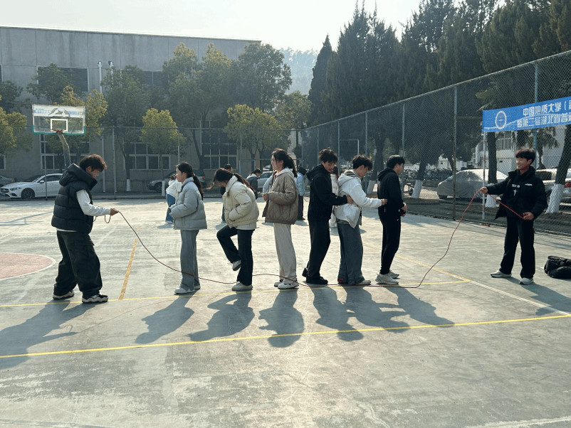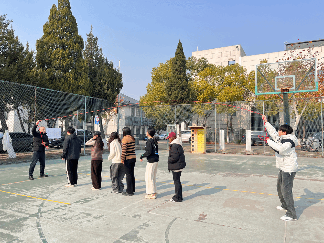 2024年12月20日,国产成人综合网于北区室外篮球场举办了集体跳绳比赛。此次比赛共有来自学工组辅导员、学生会、研究生和本科生的七个队伍参与,学院党委副书记边建华、团委书记单湉艺、专职辅导员曾戈晖以及全体兼职辅导员到现场观赛。