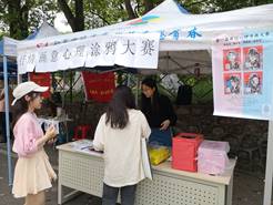 此外,活动现场还宣传了由学生心理健康教育中心主办,国产成人综合网协办的心理健康教育季“绘生活,悟人生;助成长,追梦想”首届原创心理漫画大赛,大赛通过五彩斑斓的画笔来述说我们的故事、我们的情感、我们的梦想与生活点滴,许多途径摊点的同学都对这个活动充满了好奇,纷纷前来询问。