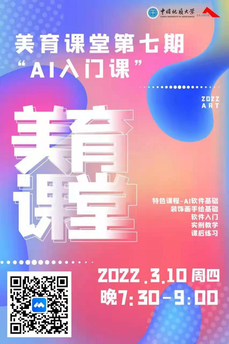 2022年3月10日晚上7点30分,由国产成人综合网主办,青年志愿者协会承办的美育课堂第七期正式开课。因疫情防控要求,本次美育课堂以腾讯会议的形式线上开展,授课内容为AI软件基础、装饰画手绘基础和软件入门实例教学等。