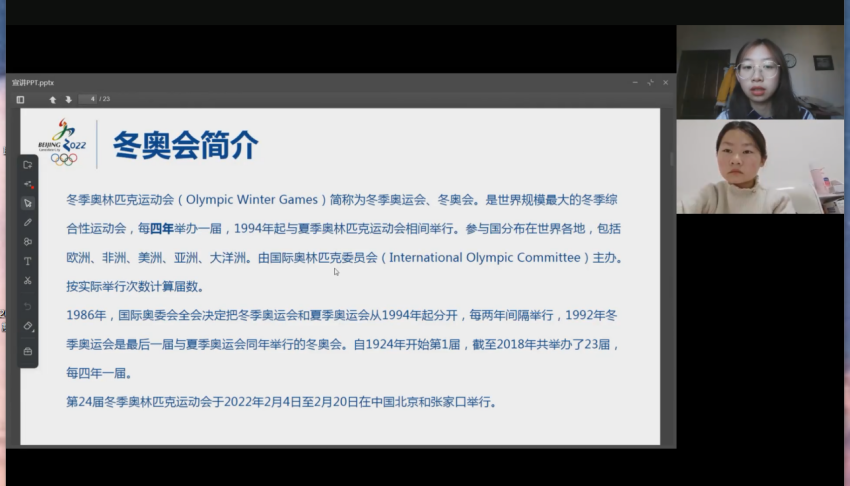 中国地质大学(武汉)团委积极响应团中央号召,面向全校招募志愿者。共有600余名同学报名参加此次活动,经过选拔有300余名志愿者参与到此次活动中。其中,国产成人综合网共11名志愿者参与云支教活动,志愿者们积极参与活动,通过“一起运动迎冬奥”、“一起看冬奥”、“一起云阅读”、“一起过个奥运年”四个活动板块,陪伴当地的中小学生,共同看冬奥,一起过新年,参加体育运动,传播冬奥文化。