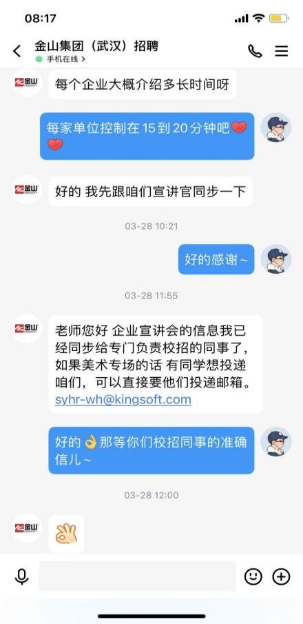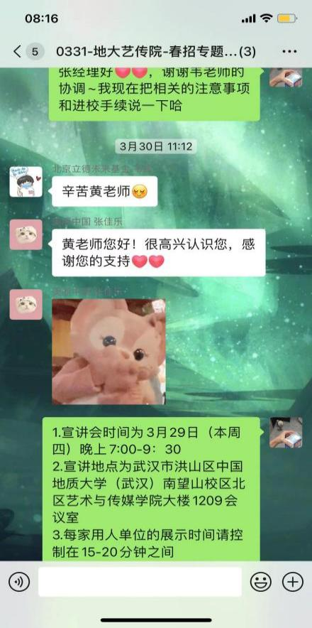 此外,我院积极与用人单位保持热切联系,纳入就业联络库,以期为今后常规化招聘工作奠定基础。学院辅导员会将用人单位提供的求职培训、课程教学、实习机会及时转发到学生群,并根据学生的求职状态进行点对点的推送。