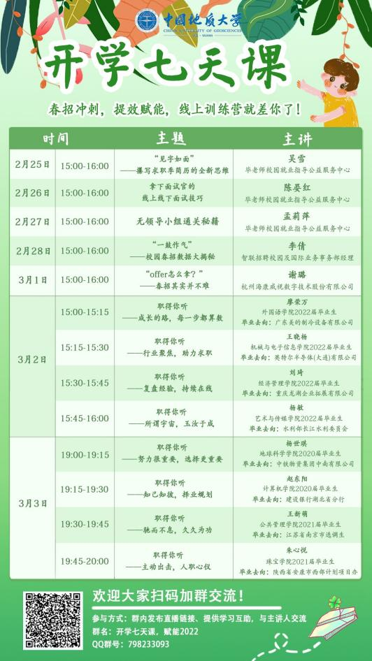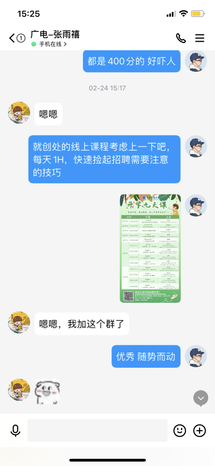 借势我校学生就业指导处举办的“开学七天课”,精准投放信息,号召学生迅速从考研的赛道转向,积极备战春招。目前已有多名学生找到心仪工作,签订三方就业协议。