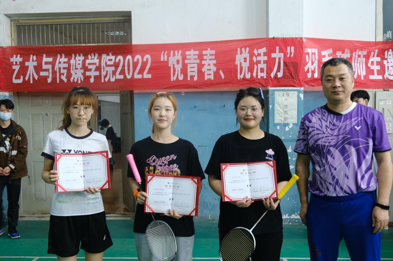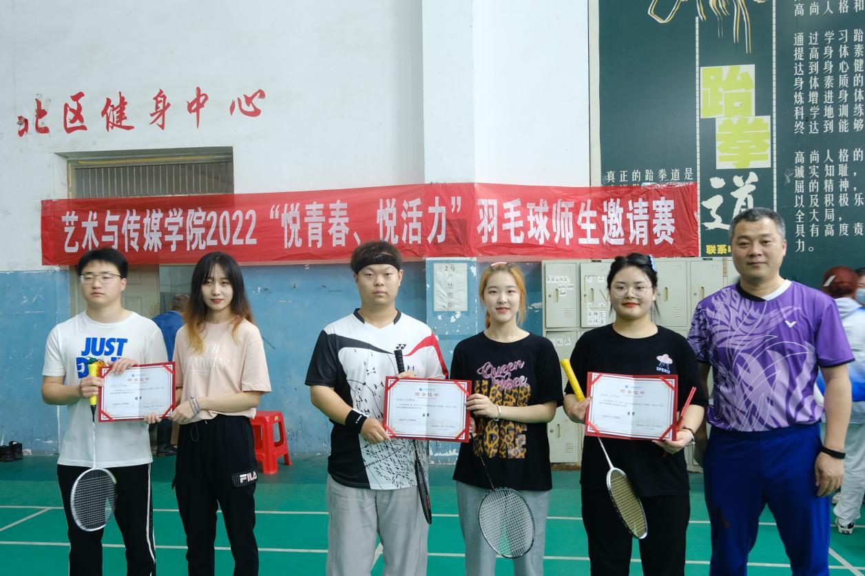 为促进同学们之间的交流和互动, 培养同学们顽强奋斗、敢于拼搏、团结合作的优良品质, 丰富同学们的课余生活, 迸发艺术活力,国产成人综合网举办了2022年“悦青春、悦活力”羽毛球师生邀请赛。本次比赛共设女单、男单、女双、男双、混双共5个比赛项目,经过半个月的激烈角逐,“悦青春,悦活力”羽毛球师生邀请赛于近期圆满结束。比赛过程中,我院师生精神抖擞、意气风发,展现了艺媒人的活力与风采。