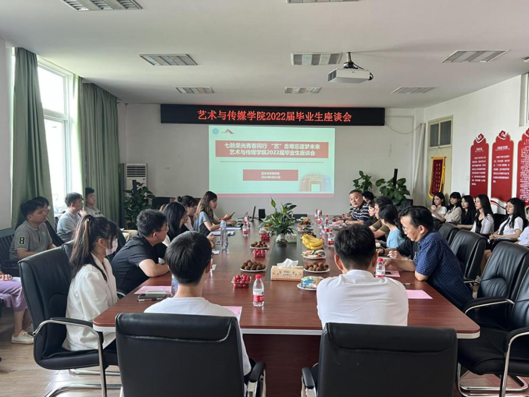 6月22日下午3点,国产成人综合网在1209会议室召开2022届毕业生座谈会,学院副院长张梅珍、杨喆、彭静,院党委副书记边建华,视觉与媒体设计系系主任狄丞,景观学系系主任廖启鹏,新闻传播系教师吴颢,学工组全体辅导员以及毕业生代表参加本次座谈会,会议由学院党委副书记边建华主持。