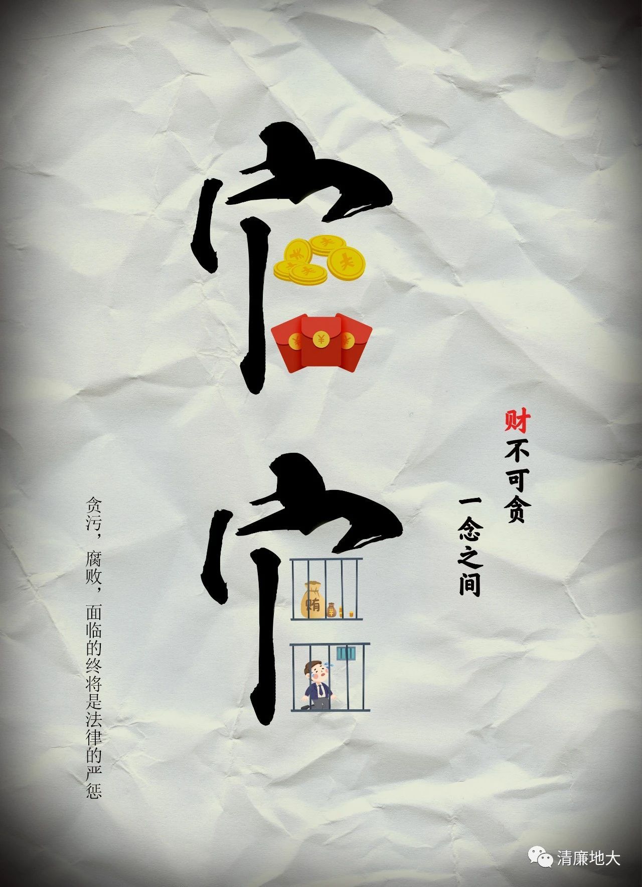 近年来,学校大力开展“清廉地大”建设,围绕“干部清廉从政、教师清廉从教、学生崇廉尚洁、学校清廉高效”等方面开展了系列活动。由纪委办公室主办的廉洁文化宣传设计大赛得到了校内各单位和广大师生积极参与,创作了一大批贴近校园生活、贴近广大师生群众、具有时代特征的优秀廉洁文化宣传作品,充分发挥了廉洁文化建设的熏陶、引导功能,对营造风清气正的校园生态环境起到了良好的促进作用。现撷取部分优秀作品在此展出。