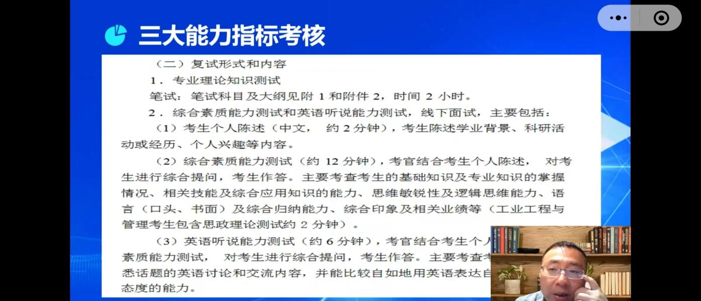 其次,谭校长为同学们剖析复试考核的本质,提出包括考生个人陈述、综合素质能力、英语听说能力的三大模块,并结合国产成人综合网的具体专业展开考核项目的内容解读,谭老师表示考研复试对学生的语言表达能力要求较高,希望同学们可以提前准备,多加练习。