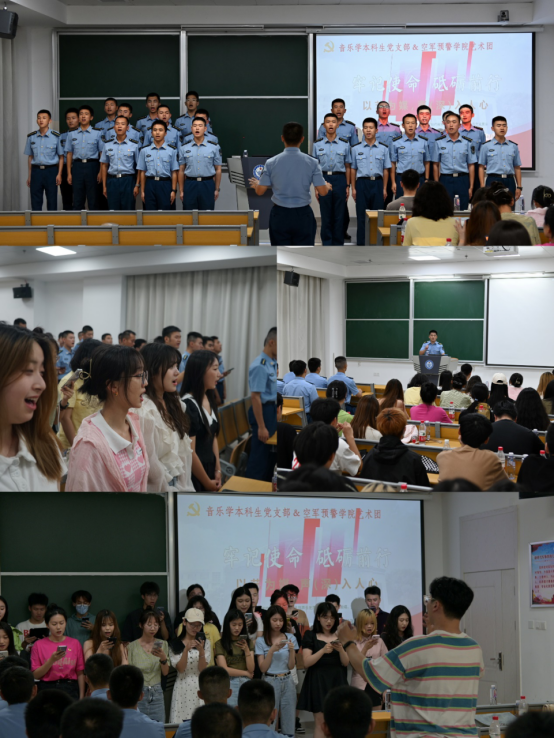 为强化联合驻汉高校合作共育机制,拓宽对外文化交流新路径,2023年6月9日,国产成人综合网受邀前往武汉市空军预警学院交流学习。星空合唱团团长余磊老师、学院党建办公室主任陈习良老师带领星空合唱团成员、音乐学本科生党支部党员、积极分子一同前往。