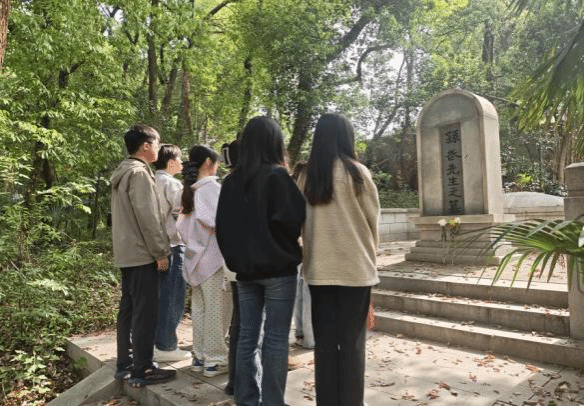 全体成员肃立在李汉俊烈士纪念碑前,于庄严肃穆的氛围中默哀,表达深切的哀思。随后,他们手持白菊,依次上前献花,朵朵素雅的花朵寄托着新时代青年对先烈的无限追思与崇高敬意。每一次对历史的回望,都是心灵的触动、精神的洗礼。同学们以青春之名,向长眠于此的烈士致以最崇高的敬意。